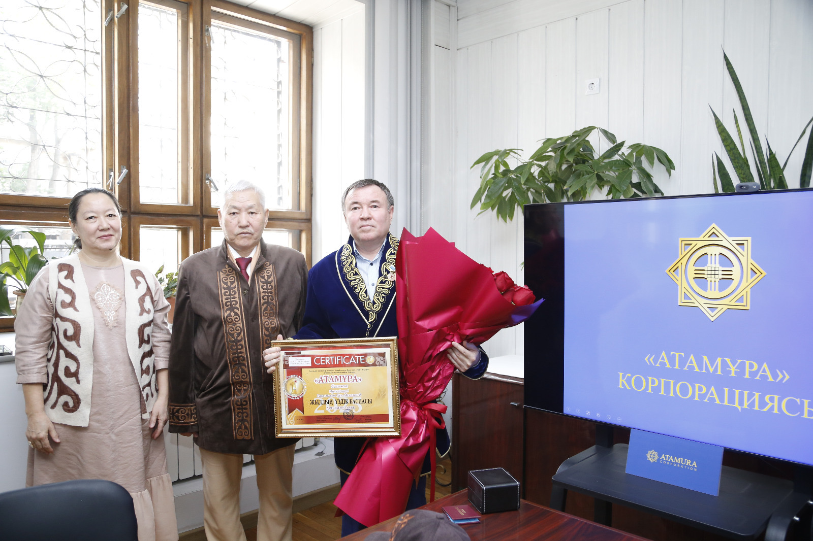 Өз кезегінде Марат Байділдәұлы Қоғамдық марапаттар жөніндегі республикалық кеңес пен «Уақыт Таңдауы» агенттігінің бірлескен жобасы аясындағы байқау қорытындысы бойынша қоғамның таңдауы — «Атамұра» корпорациясына «Жылдың үздік баспасы» марапатын табыстады. Және де Қазақстанның еңбек сіңірген қайраткері Рақымғали Абрарұлына ұлт руханияты мен баспа ісіне қосқан зор үлесі үшін «Ұлт қайраткері» медалі тапсырылды.